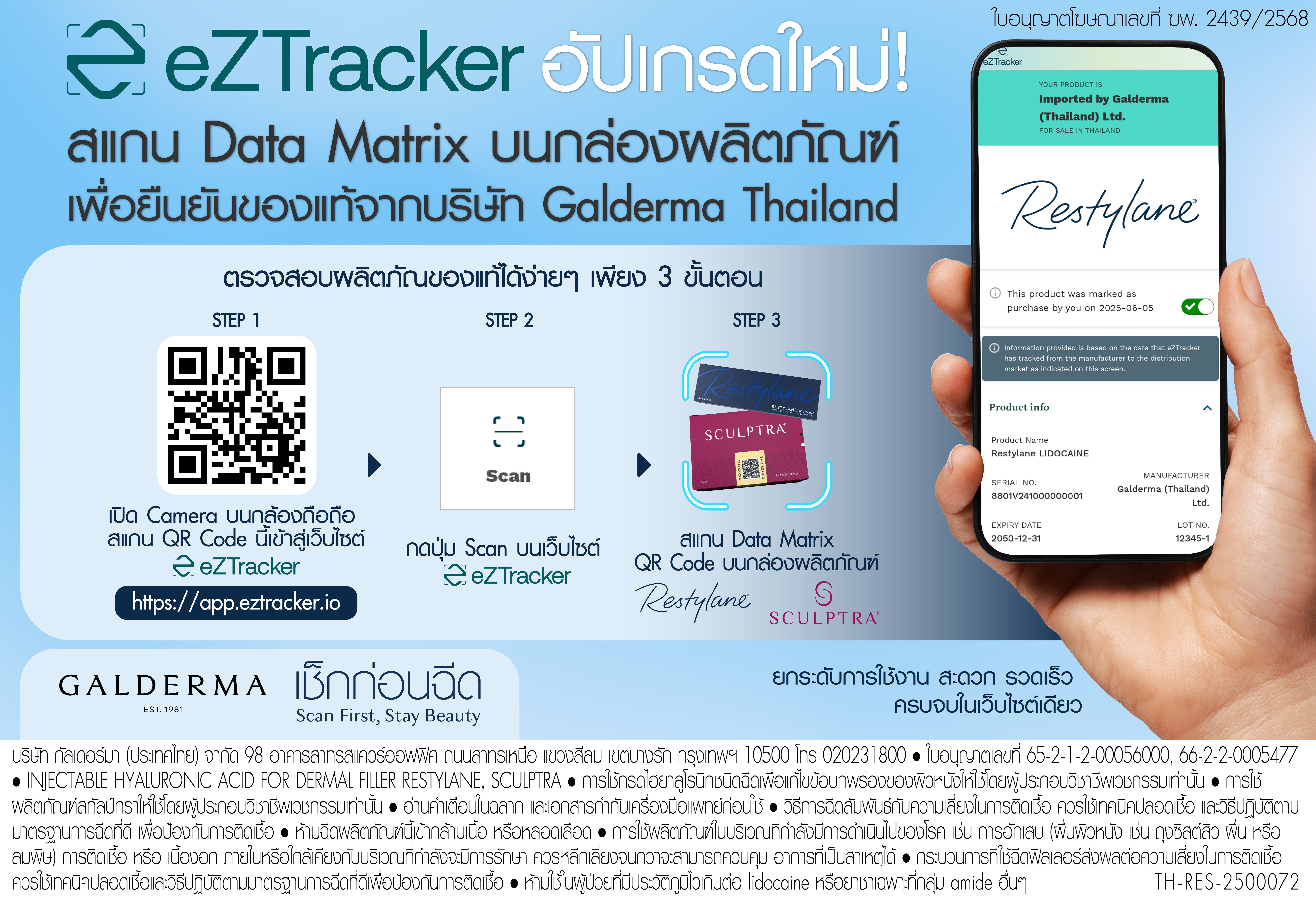 , the sole manufacturer and importer of Restylane products in Thailand, certifies that the clinic with this certificate uses genuine products that have been purchased directly from the company.
